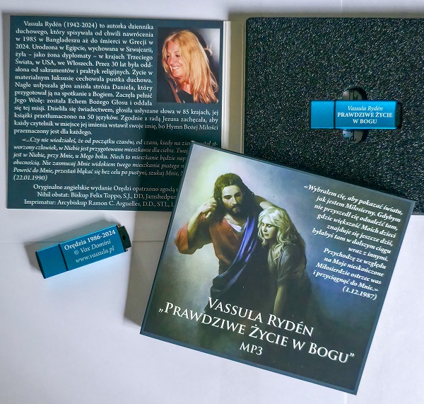 Prawdziwe Życie w Bogu (1986-2024) pendrive. Nagranie treści wszystkich Orędzi "Prawdziwego Życia w Bogu” w formacie mp3. Tekst czytany przez lektorkę. Nagranie obejmuje orędzia aż do roku 2024, czyli również te, jakie jeszcze nie zostały wydane drukiem. Pendrive został nagrany w profesjonalnej wytwórni ArtMusic z Jeleniej Góry, zabezpieczony przed skasowaniem, z grawerem, w kartonowym etui z grafiką, w folii.